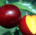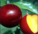 Early/mid season harvest, self fertile, good pollinator for most Asian plums, medium size, heart shaped, red with amber flesh and red streaks, very sweet and flavorful, good fresh and cooked, does not store well, zone 5 hardy, space 15′.