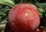 Harvest early Sept., very large, heart shaped, red skin, red flesh fruit, excellent juicy flavor, freestone, good fresh, canned, or frozen, needs pollinator, suggest Beauty or Santa Rosa, zone 5 hardy, space 15′.