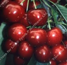 Czechoslovakian variety, grown commercially in the Northwest, heavy crops of large jet black fruit, hardy zone 4, not self fertile, suggest Lapins, Bing, Kristen, Rainier, or Stella for pollinators, space 30′.