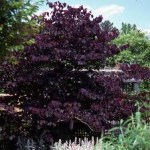 Thundercloud- Retains it’s deep purple foliage through the growing season, one of the best purple leafed varieties, light pink single flowers 20’ x 20’