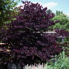 Krauter Vesuvius- This tree is slightly smaller than Thundercloud and more upright in growth habit, dark purple leaves last all summer, single pink flowers in spring, tolerates hot weather, 20’ x 15’, zone 5
