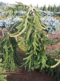 PICEA ABIES PENDULA – Weeping Norway Spruce- Requires staking for height, fast growth (12”-18”) is not uncommon, great focal point plant becoming mounding in habit with a skirt growing on the ground as tree gets older, easy to grow, deer resistant and easy to grow, very hardy zone 2 (-40 F).